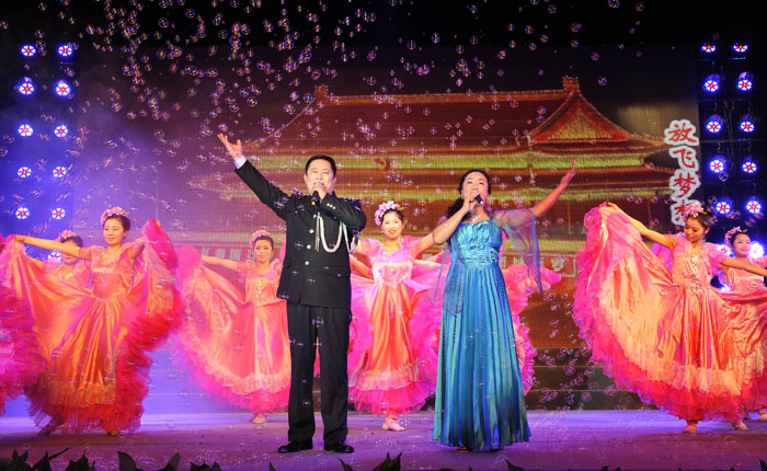 人防中心帶來的舞蹈《大姑娘美大姑娘浪》是由擒敵表演中男保安隊員反串演繹柔情的一面。此次晚會惟一特邀演員是治安支隊張蘇寧大隊長,晚會在他與公司員工榮曉娟演唱的《陽光路上》華麗落幕,