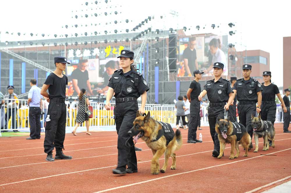 訓(xùn)導(dǎo)員攜犬認(rèn)真巡邏