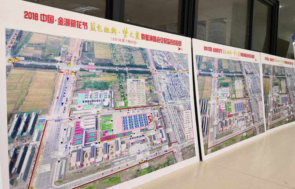 在當(dāng)天晚會(huì)演出現(xiàn)場(chǎng),所有參戰(zhàn)人員充分發(fā)揮歷年荷花節(jié)安保經(jīng)驗(yàn),淮安保安人不斷進(jìn)取,不斷提升安保品質(zhì)。在人防方面,合理調(diào)配人員,精心組織所有參加執(zhí)勤隊(duì)員學(xué)習(xí)安保方案,現(xiàn)場(chǎng)拉練,強(qiáng)調(diào)一線執(zhí)勤隊(duì)員的責(zé)任意識(shí)和主動(dòng)工作意識(shí),用行動(dòng)來(lái)踐行安全服務(wù)責(zé)任承擔(dān)者的擔(dān)當(dāng)。另外在活動(dòng)周?chē)友b了高清視頻監(jiān)控設(shè)備,在活動(dòng)現(xiàn)場(chǎng)搭建高清調(diào)度指揮中心,實(shí)現(xiàn)實(shí)時(shí)現(xiàn)場(chǎng)指揮。在無(wú)人機(jī)巡航、警犬搜爆、綜合后勤保障方面也實(shí)現(xiàn)質(zhì)的提升。