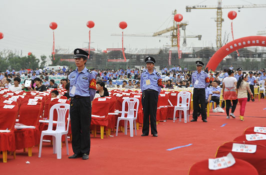 2012年6月16日晚,“七星島之夜”群星演唱會在市清河新區七星島公園舉行,著名歌手齊秦、楊鈺瑩、張鎬哲、愛戴、孫浩、張也、黑鴨子組合等演藝明星同臺獻藝。為淮安觀眾奉獻一場精彩紛呈的文藝大餐。受主辦方邀請,總公司保安人防中心派出200名保安員參加了晚會現場的部分安保任務。全體執勤隊員高度負責、認真履行崗位職責,文明執勤,圓滿完成了安保任務。