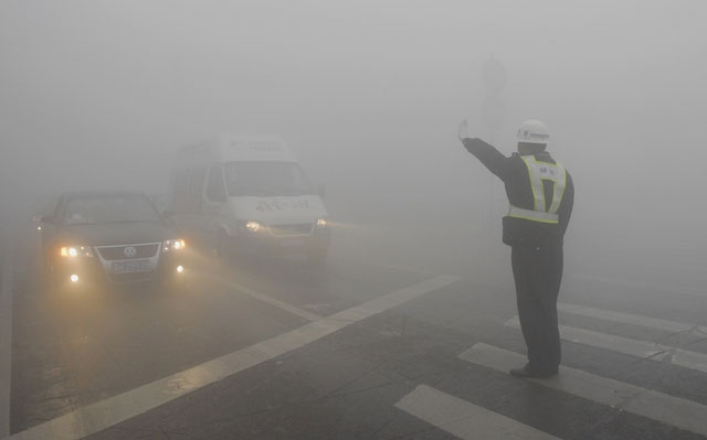 濃霧襲淮安 保安協警保交通安全