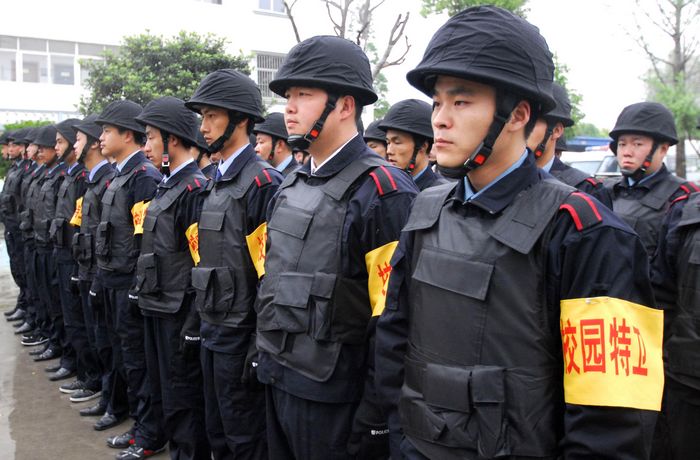 2010年5月5日早晨6時許,全副武裝的校園特衛人員整裝待發。自當日起,江蘇省淮安市首批46名配備鋼盔、防刺服、防割手套、防暴膠棒、滅火槍、催淚器等防護裝備的專職校園特衛人員開始進駐市直23所中小學和幼兒園,守護校園平安。這些人員都是從全市保安隊伍中精選出來的骨干,年齡在35歲以下,大都有部隊服役的經歷,身體素質和政治素質較好,且受過專業訓練。