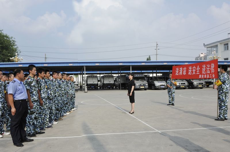 7月28日下午,淮安市總工會領導深入公司訓練場,慰問正在酷暑下訓練的校園特衛人員,并為他們送來了飲料和毛巾等防暑用品,總工會慰問組一行充分肯定了特衛人員在加強全市校園安全防范工作中所作出的成績,并勉勵特衛人員進一步加強訓練,努力提高素質,為打造平安校園作出更大的貢獻。