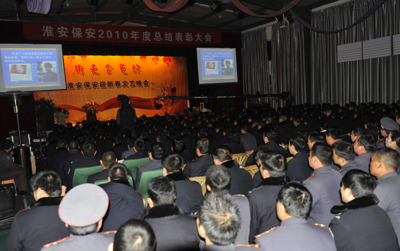 2月26日晚,一年一度的淮安保安總結表彰大會在總公司活動中心隆重舉行,公司保安隊伍、押運隊伍和各分公司員工代表800余人參加了會議。