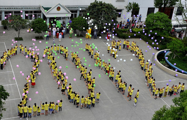 6月3日下午,總公司院內,400余名小朋友排成2012字樣并放飛氣球,共同歡度剛剛過去的六一兒童節。