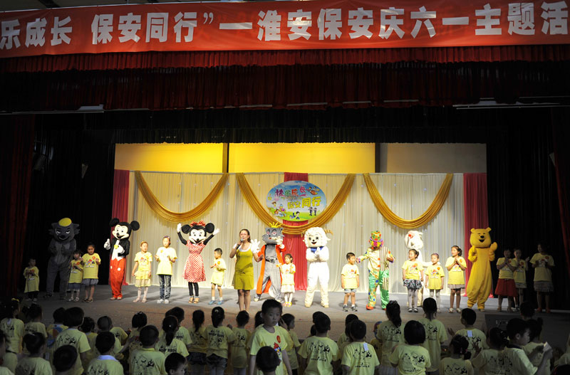 這些小朋友都是保安員工子女,他們的父母平時忙于押運工作或保安工作,很難陪孩子過六一節節,總公司利用雙休日組織親子游戲,讓員工子女歡度一次“遲來“的六一節。