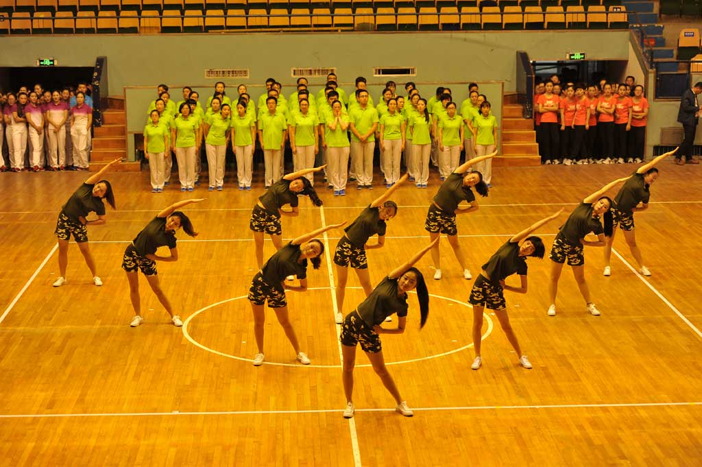 在此次活動中,所有人員充分發(fā)揮了不怕苦、不怕累的精神,積極參與排練,刻苦訓(xùn)練,最終獲得了殊榮。由于時間緊,任務(wù)重,接到通知時已臨近比賽,從各部門人員抽調(diào)到排練只用了一個星期。所有人員都是初次接觸第九套廣播操,所有動作都是第一次學(xué)習(xí)。人多動作復(fù)雜難以整齊劃一。為了達(dá)到整齊劃一的標(biāo)準(zhǔn)動作,帶隊(duì)崔主任帶領(lǐng)大家一遍又一遍的練習(xí)。從早晨8點(diǎn)一直到晚8點(diǎn),期間,所有人員克服了種種困難,訓(xùn)練場流下了淚水與汗水。