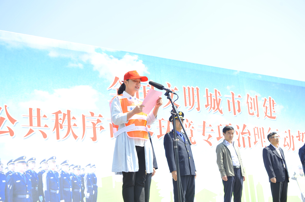 總公司組織200人組成文明志愿者方陣參與本次活動,行政管理中心綜合管理部副主任黃華作為文明交通志愿者代表發言,宣讀行動倡議書,倡導大家從現在、自身和點滴做起,將淮安建設成一座崇德向善、文化厚重、和諧宜居的文明城市。