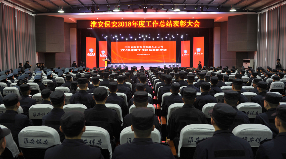 會議觀看了《淮安保安2018年度工作總結報告》視頻短片,對2018年度工作進行了總結,對總公司2019年度工作進行了部署;人防管理中心、押運管理中心、駐外分公司等10個部門向婁伯翱總經理遞交了《2019年度工作目標責任狀》;并對一年來工作突出的先進集體和先進個人進行了表彰。