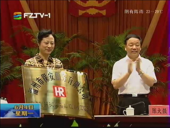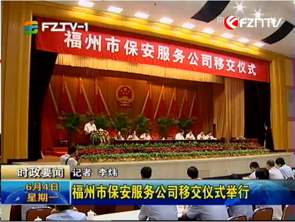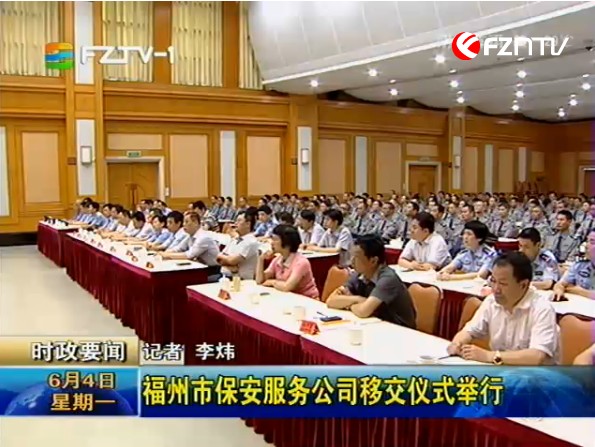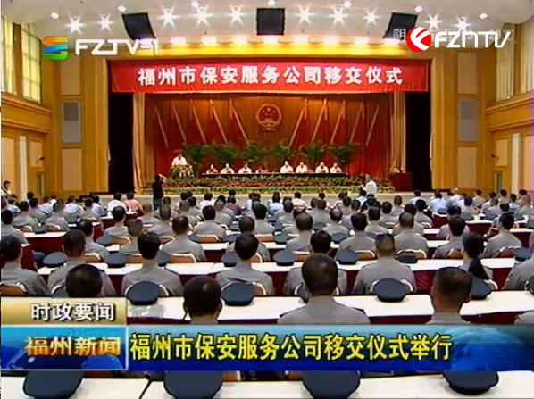 福州市公安局消息 6月4日上午,福州市保安服務公司交接儀式在市委禮堂舉行。福州市盈瑞投資有限公司正式承接由公安系統剝離出來的福州市保安服務公司。市委常委、常務副市長陳大強,市委常委、政法委書記陳為民,省公安廳副廳長、市政府副市長、市公安局局長徐凡新,省公安廳治安管理總隊政委、省保安協會副會長張德雨,市局黨委委員、副局長鄭雷聲以及市政府相關部門領導出席現場移交儀式。
