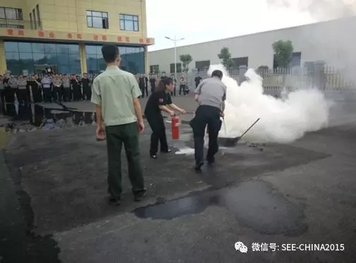 下午4時,火災警報鈴聲響起,全體參訓人員根據指定線路有序地進行緊急疏散,撤離至安全地帶,同時撥打火災報警電話請求救援,消防官兵接報后迅速到達現場消除火種。隨后,唐峰林、黃翔以真實案件為例,運用通俗易懂的語言,就住宿樓火災防范、初期火災撲救、如何快速疏散逃生等內容進行宣傳講解;他們以現場演示的形式,向參訓人員展示滅火器的使用要領,引導員工共同營造良好的消防安全環境。