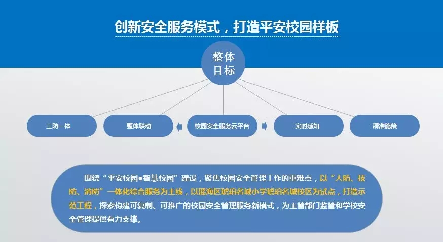 5月10日,合肥保安集團(tuán)有限公司與合肥市瑤海區(qū)琥珀名城小學(xué)正式簽署“平安校園”合作協(xié)議。雙方將以琥珀名城小學(xué)琥珀名城校區(qū)為試點(diǎn),共同打造“平安校園”示范工程,推廣校園安全管理服務(wù)新模式。琥珀名城小學(xué)擁有在校學(xué)生3200余名,近年來辦學(xué)規(guī)模不斷擴(kuò)大,但校園現(xiàn)有技術(shù)設(shè)備和安保服務(wù)分類建設(shè),系統(tǒng)性不足,合力不足,安防基礎(chǔ)設(shè)施設(shè)備較弱。在瑤海區(qū)政府、教體局等部門的指導(dǎo)下,保安集團(tuán)依據(jù)琥珀名城小學(xué)(琥珀名城校區(qū))自身特點(diǎn),通過優(yōu)化人防,增加安保人員與交通引導(dǎo)人員力量,強(qiáng)化管理監(jiān)督。提升技防使用入侵報(bào)警探測(cè)、電子巡更、智能分析系統(tǒng)等,實(shí)現(xiàn)監(jiān)控全覆蓋,消防在線監(jiān)測(cè)。更以保安集團(tuán)接處警中心為媒介與110接處警系統(tǒng)、公安局、教體局、衛(wèi)計(jì)委等形成多方聯(lián)動(dòng),大大提高了緊急事件處理的時(shí)效性。從多方面為琥珀名城小學(xué)(琥珀名城校區(qū))提供“一體化綜合智能安保服務(wù)”。
