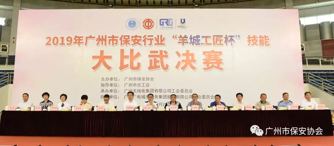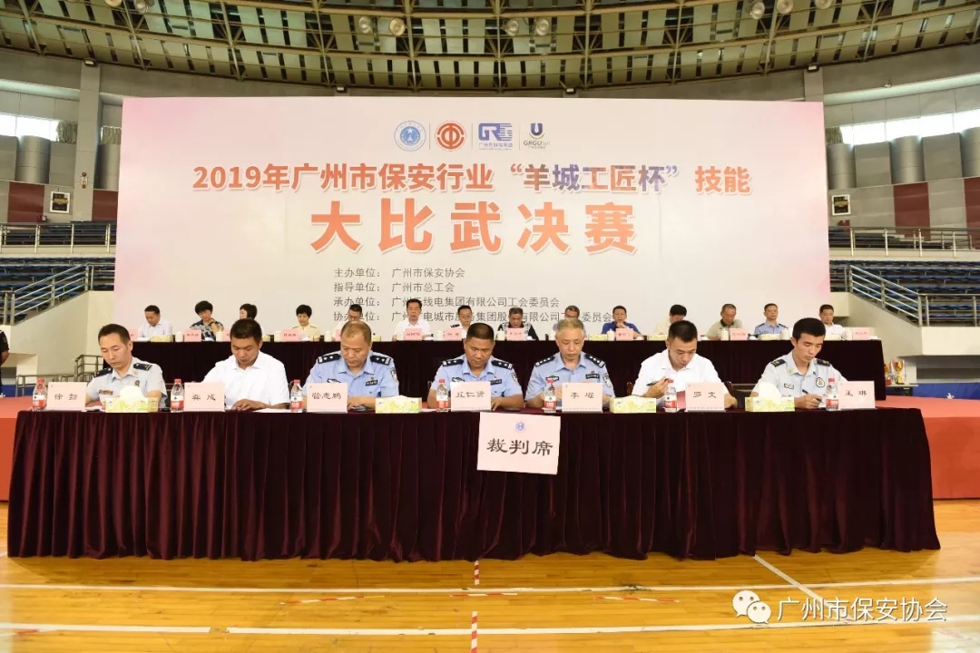 為提升廣州保安隊伍實戰水平和安全防范能力,激發廣大保安員的工作熱情,動員號召全市保安企業和廣大保安員積極投身服務新中國成立70周年安保工作。在廣州市公安局治安管理支隊、廣州市總工會的指導下,8月21日下午14時,由廣州市保安協會主辦、廣州無線電集團有限公司工會委員會承辦、廣州廣電城市服務集團股份有限公司工會委員會協辦的2019年廣州市保安行業“羊城工匠杯”技能大比武活動在廣州中醫藥大學體育館(大學城校區)順利舉行。