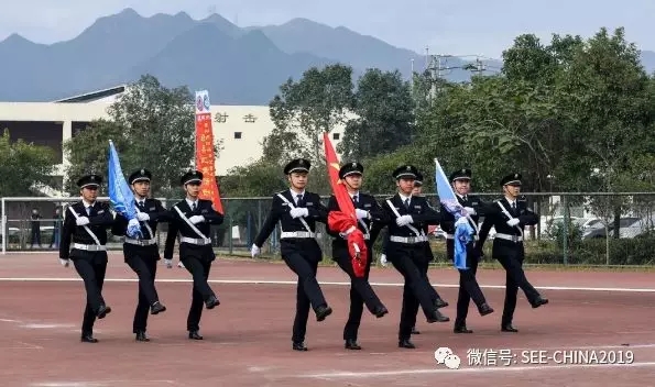 開幕式上,溫州市保安服務(wù)總公司作為此次活動的冠名單位,表演國旗入場與升旗儀式。當(dāng)護旗手昂首挺胸,邁著堅定的步伐,踏過嶄新的跑道,一路護送國旗走向主席臺,伴隨著慷慨激昂的《義勇軍進行曲》,五星紅旗冉冉升起,正式拉開了技能競賽活動的序幕,極大地鼓舞了隊員們的參賽士氣。