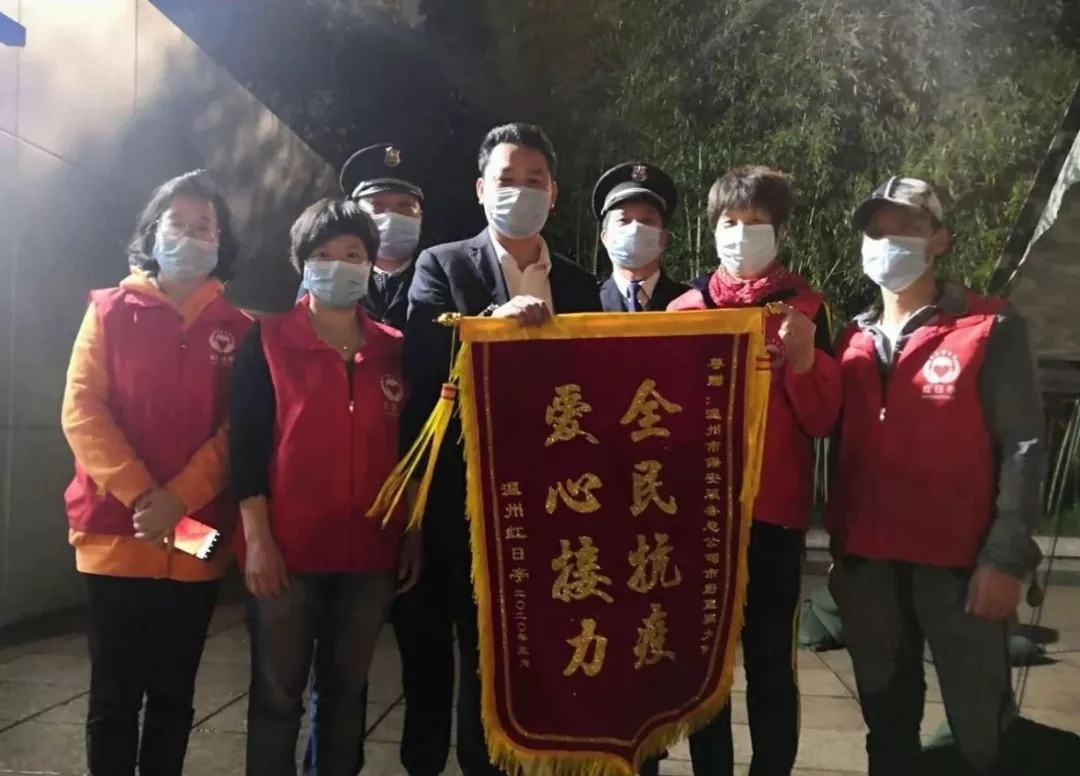 雖然捐款金額不高,但都包含著溫州保總隊員們的心意。3月28日,紅日亭為溫州保總的愛心捐贈贈送錦旗,錦旗上寫著“全民抗疫、愛心接力”。隊員們表示這是應該做的,在災難面前,眾志成城,守望相助,我們必將共渡難關。