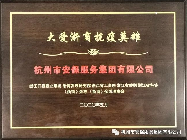 大會現場,“大愛浙商抗疫英雄”、“華人華僑抗疫英雄”、“抗疫科技之星”四大榜單同時發布。浙江省副省長高興夫,浙江省第十二屆人大常委會副主任、浙商發展研究院院長王永昌,浙江省工商聯主席王建沂,浙江省委統戰部副部長、浙江省工商聯黨組書記陳浩,浙江省僑聯黨組書記、主席連小敏,浙江省科協副主席姜長才等出席大會并為獲獎代表頒獎。杭州市安保服務集團有限公司因在抗疫過程中所作出的突出貢獻,上榜“大愛浙商抗疫英雄”,公司黨委副書記、總經理傅振宇作為獲獎代表受邀出席本次大會并上臺領獎。