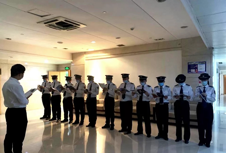 其次開展政治培訓學習,為加強隊員個人政治思想從而提升信訪接訪業務水平。在辦公室主任周兆松的帶領下,大隊開展了保安員讀書日,設立在每周一中午,利用單位內部午休時間對《中國保安》相關章節進行分析點評,由保安大隊隊長進行總結內容及注意事項,分析大隊接訪及日常工作中所遇到類似情況時保安員應如何更妥善的處置。