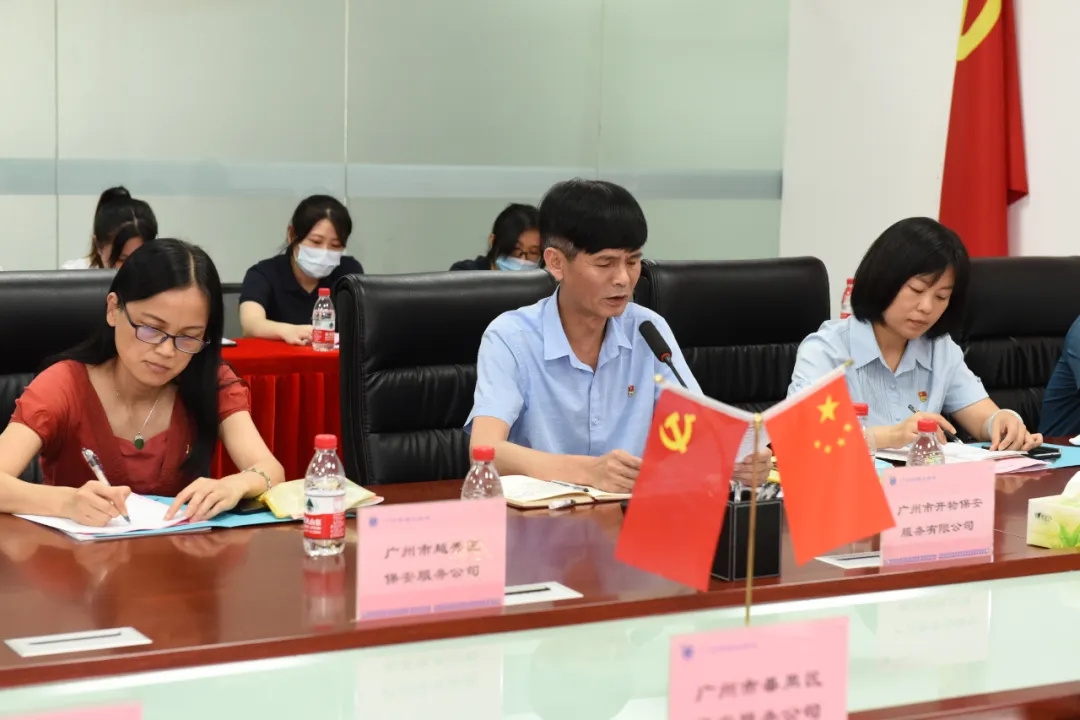 廣州市南沙保安服務(wù)有限公司黨支部書記劉文超圍繞該公司脫鉤改制后堅持黨的領(lǐng)導(dǎo),健全了支部班子,積極推進(jìn)黨組織建設(shè)在國有企業(yè)高質(zhì)量發(fā)展中起到的作用等工作情況進(jìn)行分享。