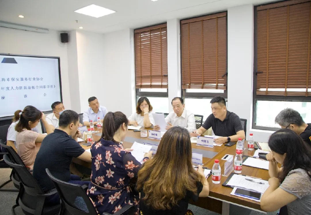 7月3日下午,上海市保安服務行業協會召集部分保安企業開展《年度人力防范最低合同指導價》調研座談會。協會秘書長楊躍毅,辦公室主任李國玉,行政部主任鄭葉華及上海市保安服務(集團)有限公司、上海市浦東新區保安服務總公司、上海暢銘保安服務有限公司、上海賽夫保安服務有限公司、上海宗保保安服務有限公司、上海景鴻保安服務股份有限公司、上海誠信中寧保安服務有限公司、上海地久保安服務有限公司8家企業參加會議。