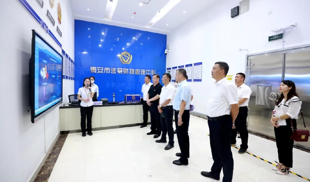 國泰保安羅來明總經理參觀了涉案車輛保管區,實地考察了管理中心各類涉案財物保管庫房和處置區以及5G遠程示證室。觀看了涉案財物一體化管理和智慧管理平臺運行宣傳片。