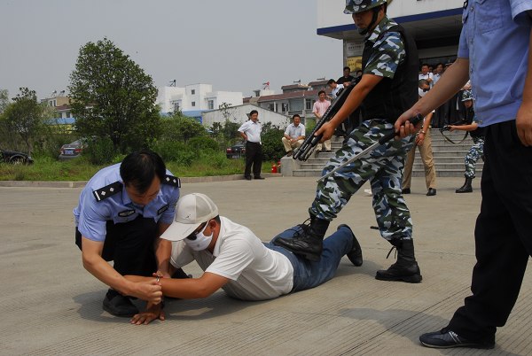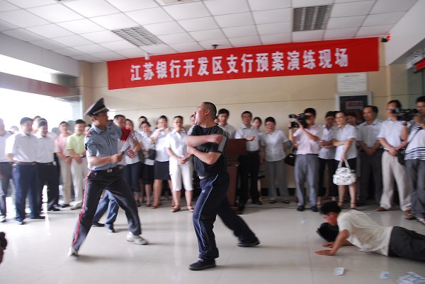 演練主要模擬犯罪分子持刀搶劫錢箱和客戶在提取大額現金時進行搶劫等突發情況。參練人員按照緊急處置預案各司其責,迅速有序地開展各項應對處置工作,取得了預期的效果。