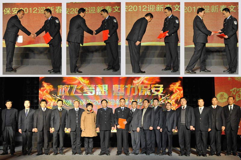 2012年元月14日晚,淮安保安2011年度總結表彰大會在總公司活動中心隆重舉行,公司保安隊伍、押運隊伍和各分公司員工代表700余人參加了會議。
