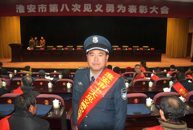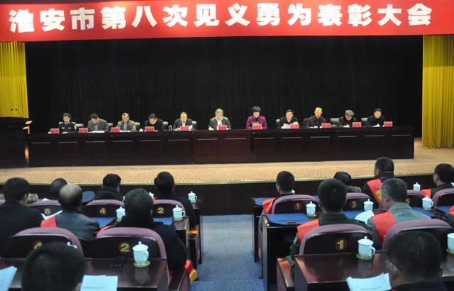 2014年12月11日下午,在市政府在第一會議室召開。淮安市第八次見義勇為表彰大會,全市66名見義勇為先進分子受到表彰。我公司人防二大隊保安員林學軍被授予“淮安市十大見義勇為先進分子”榮譽稱號,獲獎金6萬元。