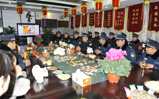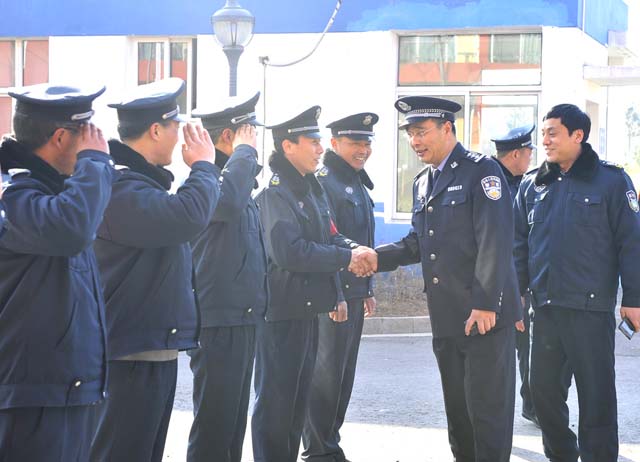 2月19日(大年初一)早晨,總經理婁伯翱在保安人防管理中心總監王錦春陪同下,親切慰問了人防中心駐市行政審批中心、市救助站、市財政局和市農行淮安分行等人防執勤點以及銀盾駕校、犬防基地等部門堅守崗位的保安員工;副總經理徐文剛慰問了堅守崗位的駐市供電局、西韓泰、清浦開明中學等執勤點的保安員。每到一處,公司領導都與堅守崗位的保安員親切握手,詳細詢問隊員的工作和生活情況,并向堅守崗位的員工致以新春的問候,祝福大家新春快樂、全家幸福!并勉勵大家在新的一年里勤奮工作,敬業奉獻,為淮安保安工作再上新臺階作出更大的努力和貢獻!