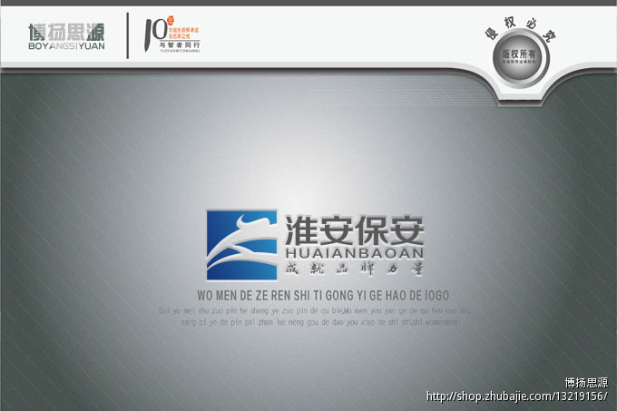 1、主圖標后部以抽象的兩個握緊的拳頭羽翼狀分布象征力量與團結 事業騰飛,中心盾形設計象征實力與安全配以皇冠和星形象征安保力量血統純正服務品質優良。