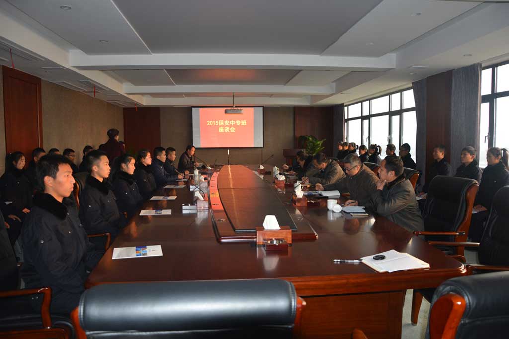 近日,保安班全體成員在公司開展座談活動。公司總經(jīng)理婁伯翱、行政中心陳總監(jiān)、黃主任以及各部門領(lǐng)導出席會議。