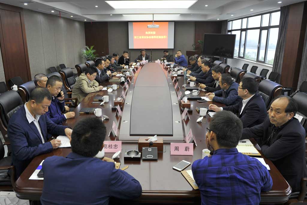 為提升保安企業管理水平,服務經濟社會發展,進一步加強浙江和江蘇兩省保安協會之間的溝通與交流,2016年4月27、28日, 由浙江省保安協會副會長沈鑫祥率隊等一行16人,來到總公司進行考察交流。江蘇省公安廳治安總隊政委兼江蘇省保安協會法人代表常志堅、江蘇省公安廳治安總隊保安科科長錢幼菁和江蘇省保安協會副秘書長徐松專程從南京到淮安迎候,淮安市公安局副局長唐衛東、治安支隊支隊長郝群和公司總經理婁伯翱帶領公司領導班子及有關部門負責人熱情接待了考察團一行。