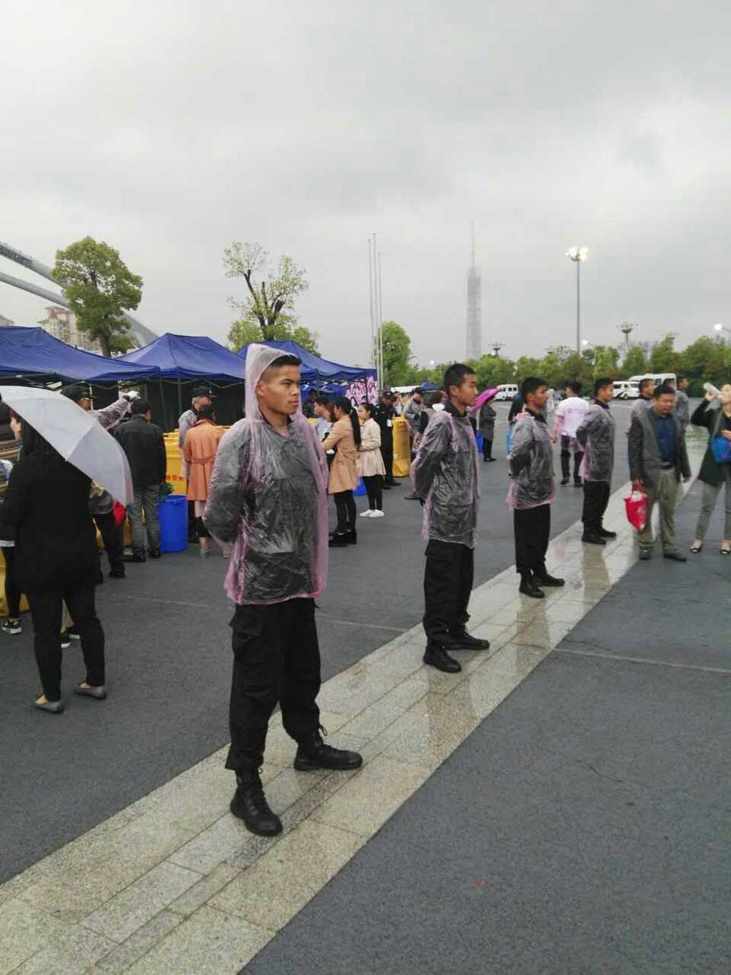“1號點到位、2號點到位、3號點到位······”,根據指揮部的統一部署,從5月2日14:00開始,參加執勤的第一批人防保安員700余人到達指定地點集結,16:00所有人員全部進入預定崗位開展工作,晚會雖然只有短短的三小時時間,但保安人員一直至深夜24:00全才陸續結束任務,安全歸隊。特別在17:00開始檢票至19:30演出這段時間,天降大雨,雨水淋了外衣,汗水濕透襯衣,但所有執勤人員沒有因為大雨而離開崗位,他們全部堅守崗位,認真履職,確保觀眾安全有序進場。