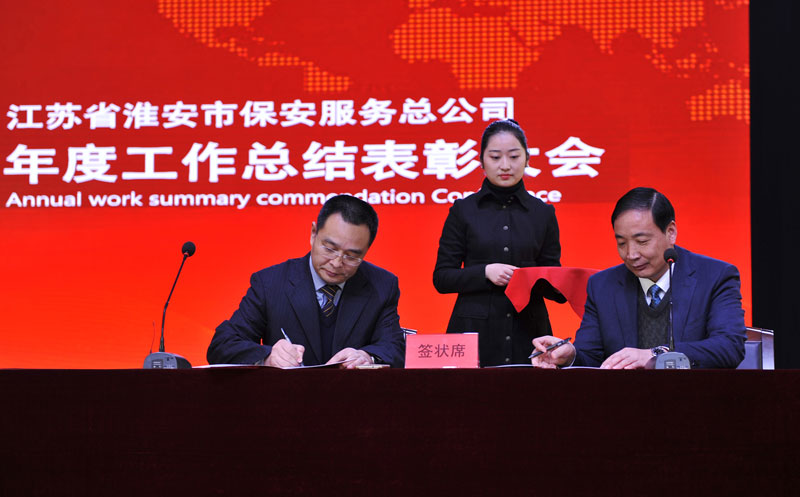 會議通過多媒體工作報告對淮安保安2016年度工作進行了總結,表彰了年度工作突出的先進集體和先進個人,對公司2017年度工作進行了部署。婁伯翱總經理代表總公司與押運管理中心、人防管理中心、駐外分公司等13個部門簽署了2017年度目標責任狀。