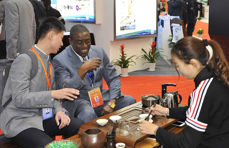 國外嘉賓來公司展臺了解中國茶文化