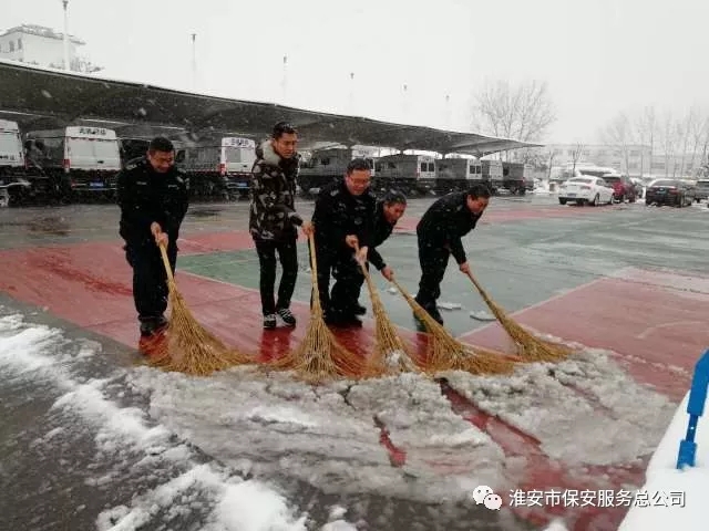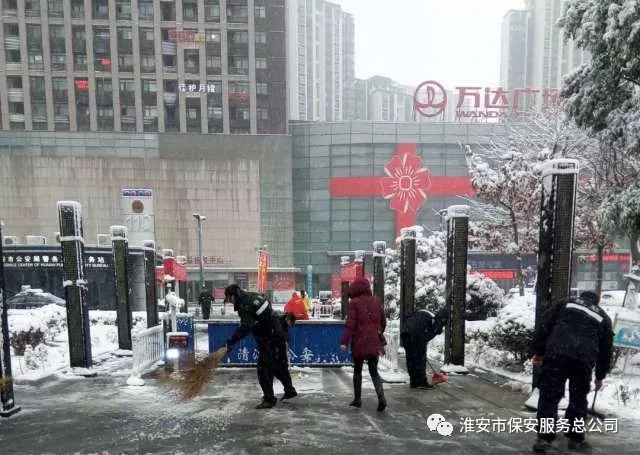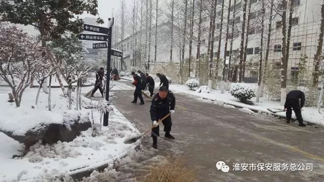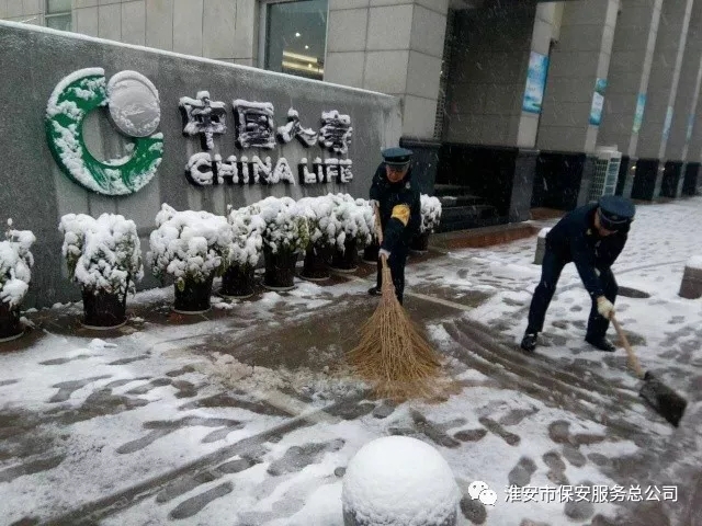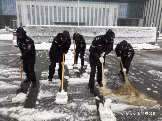 然而,雪景甚美,卻為出行的行人們帶來了嚴寒和積雪成冰的出行困難。淮安市保安服務總公司的保安們,考慮到種種問題,不畏嚴寒,在夜間按時出車執(zhí)勤,天不亮就拿起掃雪工具,積極主動清掃客戶單位門前、院內(nèi)積雪。積雪松的地方用推雪板推,積雪壓實的地方就用鐵鍬一點點的鏟除,執(zhí)勤崗點上的保安們呈現(xiàn)出一派火熱的鏟雪場景,讓城市煥發(fā)潔凈的光彩。