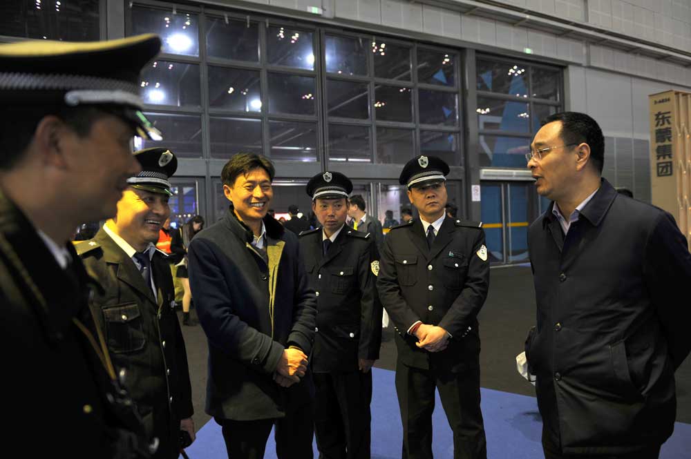 在上海國家會展中心,婁伯翱總經理實地查看了隊伍執勤情況,詳細了解了隊員工作職責和工作時間,聽取了近期工作匯報。并針對駐滬隊伍伙食、班次、休假、交通以及業務發展等工作與客戶單位負責人進行了深入溝通交流。