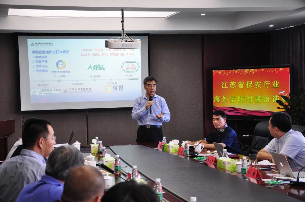會上,江泰保險經(jīng)紀股份有限公司重點發(fā)布了海外投資安全風險;江蘇省海外企業(yè)集團介紹了海外投資項目有關情況,提出了具體安防需求;淮安市保安服務總公司等企業(yè)分別介紹了“走出去”的探索做法和下階段的發(fā)展方向。