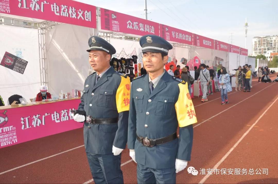 總公司派出130余名保安力量,承擔音樂節的預檢票口、檢票口檢票、安檢、貴賓入口以及內場和舞臺區域的管控和秩序維護等工作。此次音樂節從中午13:30開始直至21:40,執勤時間長、人員環境復雜、工作任務艱巨??偣救朔拦芾碇行?30余名保安員于中午12時準時進入預定崗位,直至音樂節結束,長達8個小時期間,淮安保安人堅守崗位、認真履職。黃紅相間“淮安保安”靚麗的臂章在各個崗位上,成為音樂節的一道亮麗風景?;窗脖0驳膰乐斪黠L,嫻熟的業務能力,文明的服務態度,得到主辦單位的肯定。