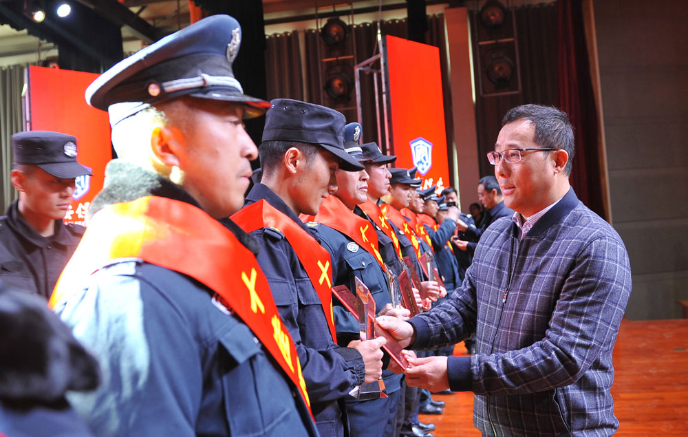 2019年3月3日上午,總公司在二樓報(bào)告廳隆重召開2018年度工作總結(jié)表彰大會(huì)。國聯(lián)集團(tuán)湯正明董事長、辦公室孫國庭主任出席會(huì)議;總公司黨總支成員和各部門負(fù)責(zé)人;市區(qū)押運(yùn)員和駐縣押運(yùn)員代表;保安分隊(duì)長以上骨干和保安員代表;駐外分公司駐外執(zhí)勤項(xiàng)目部負(fù)責(zé)人和高級(jí)安保專業(yè)班學(xué)員等共900余名員工參加了會(huì)議。