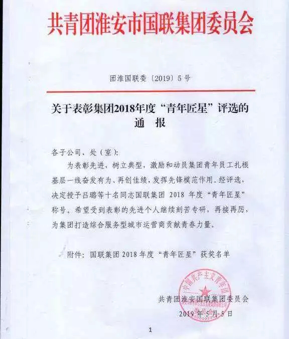 為紀念“五四”運動100周年,進一步繼承和發揚“五四”精神,表彰先進、樹立典型,激勵和動員青年員工扎根一線奮發有為、再創佳績,發揮先鋒模范作用,國聯集團決定授予十名同志2018年度“青年匠星”稱號。
