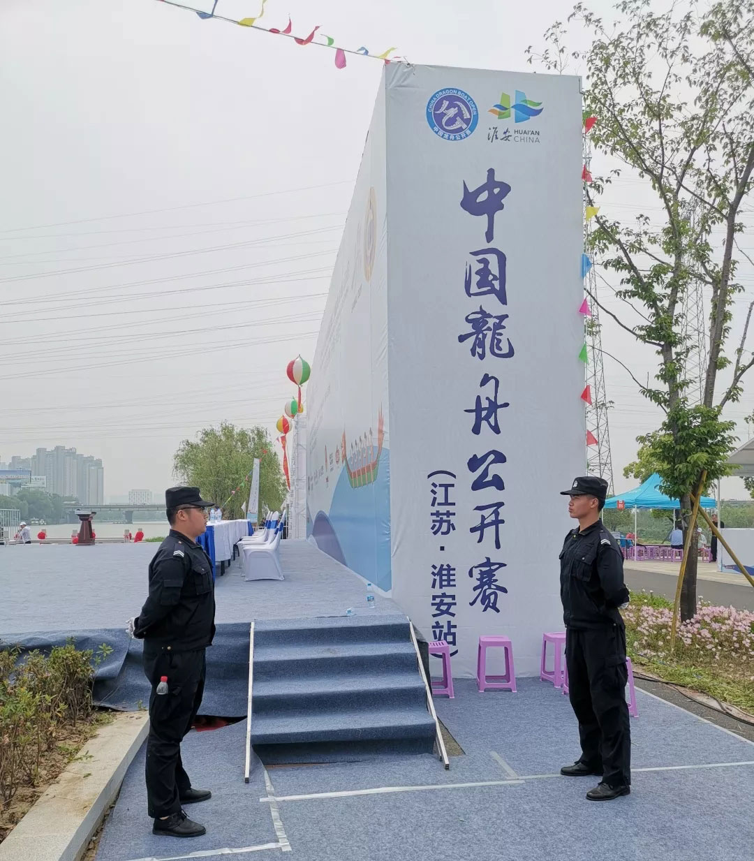 5月13至15日,第二屆全國青年運動會龍舟項目預賽也將在江蘇淮安里運河風光帶龍首灣河段開賽,全國14支隊伍441人參加,角逐山西太原的第二屆全國青年運動會龍舟賽決賽資格。淮安保安執(zhí)勤隊員們也將在這次賽事中堅守崗位、盡職履責,抗擊疲勞、化解風險,全程以飽滿的精神面貌和較強的隊伍素質,獲得了現(xiàn)場群眾的一致認可,圓滿完成了龍舟賽活動的安全保衛(wèi)工作任務。