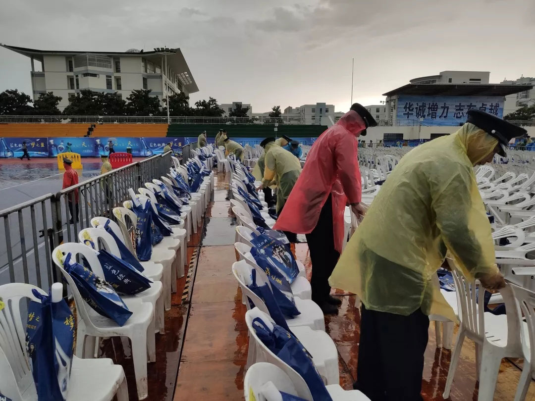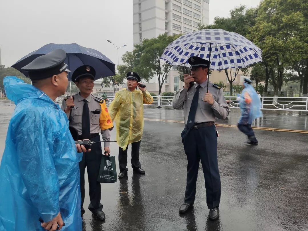 7月6日下午15點,晚會現場暴雨來臨,降雨量已超100毫米,雨勢持續,并伴有雷暴天氣。由于惡劣天氣影響,加上持續暴雨,部分道路積水嚴重,給觀眾入場帶來安全隱患。總公司立即啟動災害天氣應急預案,行政部門迅速出動,發放雨衣。人防管理中心組織全體保安隊員,在重要路口指揮疏導,采取定人、定崗、定責的預防措施,全體保安隊員在暴雨中堅守崗位,認真做好崗位工作。