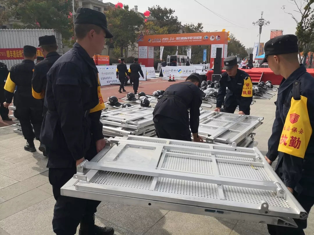 執勤安保人員提前一天到達現場安裝隔離欄,為馬拉松賽事筑牢安全墻。比賽期間,各部門緊密配合,精誠協作,確保了比賽絕對安全。在轄區各路口疏導交通,引導行人、車輛離開賽事區,幫助找回兩名失散兒童,保管遺失的軍官證一本并尋找到了失主。從第一批執勤安保人員5點進入現場,到下午2點把搭建的物件拆除完畢,執勤隊員們結束了長達9個小時的安保“馬拉松”。