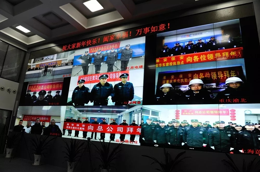 隨后,總經理趙愛忠、副總經理姜志倫等領導班子一行前往二樓視頻指揮調度中心,通過互聯網視頻連線慰問了駐外分公司和新疆分公司部分駐外隊員。