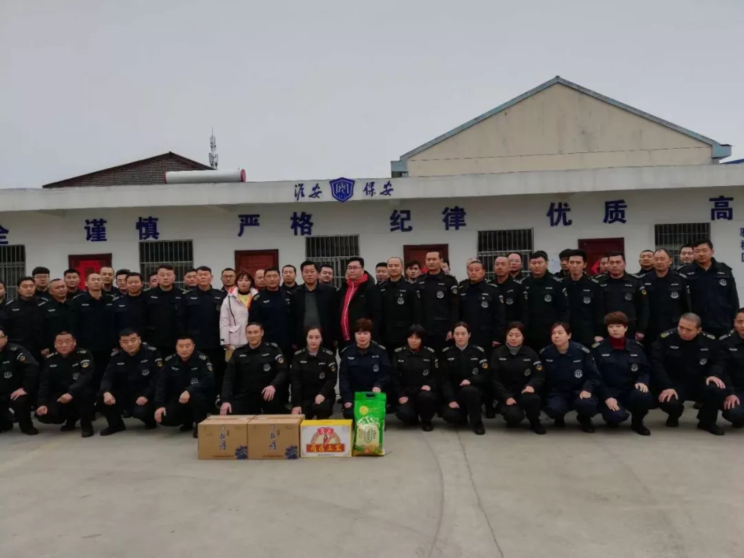 隨即,總經理趙愛忠、副總經理王錦春一行親切慰問了駐淮安市政務中心、金融中心、順泰包裝有限公司、銀盾供應鏈物流監管倉庫等執勤點隊員,給他們帶來節日的祝福,鼓舞了隊伍的士氣!