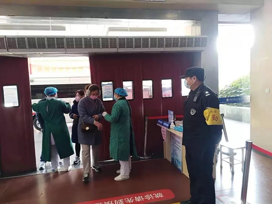保安隊伍嚴把客戶單位人員和車輛出入關,對進入執勤區域的人員進行測溫登記和車輛消毒,配合客戶單位對辦公場所等公共區域進行消毒防控;駐醫院保安員在執勤中認真做好就診人員體溫測量,疏散、引導就醫;駐銀行保安員在執勤中督促辦理業務的客戶做好自我防護,并提醒佩戴防護口罩,協助銀行對客戶進行體溫測量,做好安全防護措施。