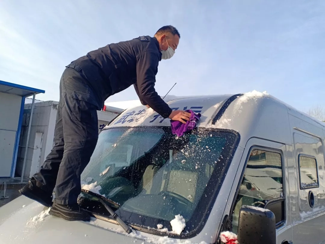 2月16日凌晨1點,押運管理中心主任陳正國、教導員馬如松也沒有睡踏實,因為他們知道,嚴重結冰的路面會使押運任務更加異常的艱巨。于是,他們通過押運工作微信群向各部門下達了一道道指令,認真細致布置工作任務和注意事項,一再提醒大家溫度大幅下降,上班的同志多穿衣服注意保暖,道路結冰的路面光滑,一定要注意自身安全;要求車長以上骨干和駕駛員同志要提前半小時到崗,防止車輛難以啟動,對車輛的水、電、氣以及疫情防護用品都要做好全面檢查,確保正常運行。