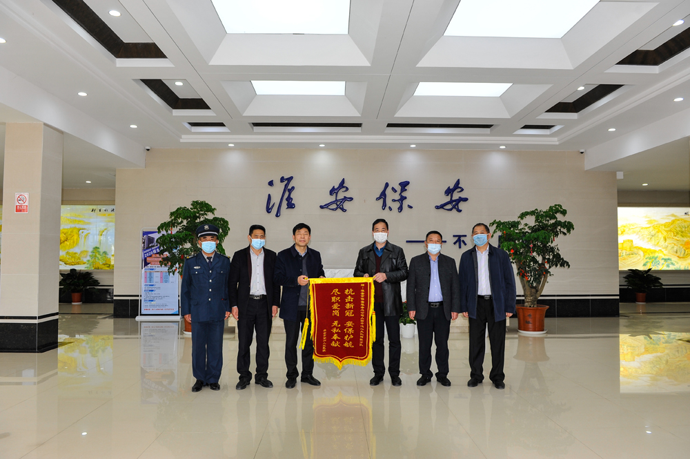 3月24日下午,淮安市第四人民醫院副院長周宏、保衛科科長陳海云來到總公司座談并送來錦旗,總公司副總經理王錦春陪同。